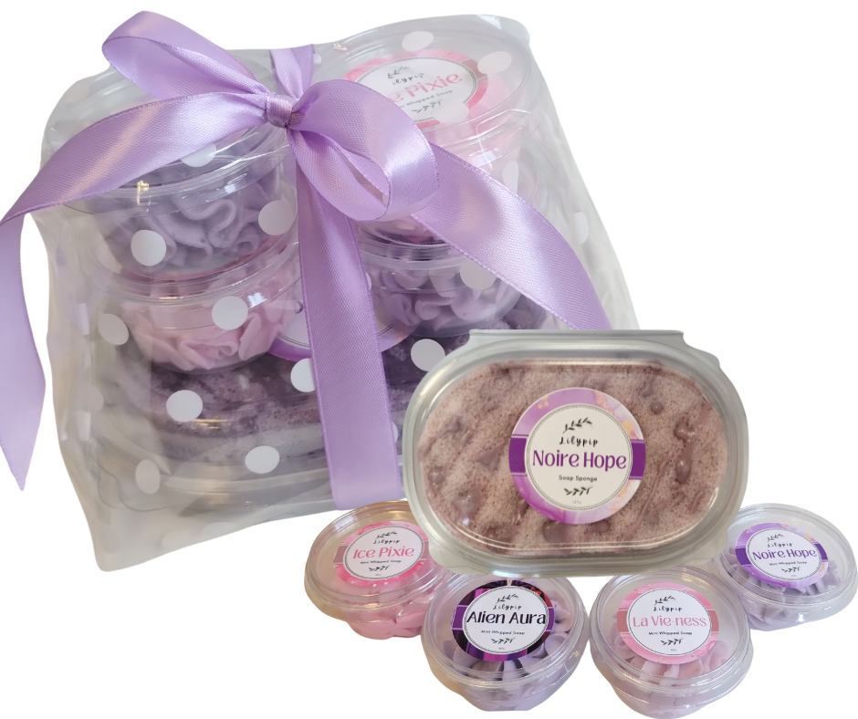Soap-Filled Sponge (175g) + 4 Mini Whipped Soaps (40g each)